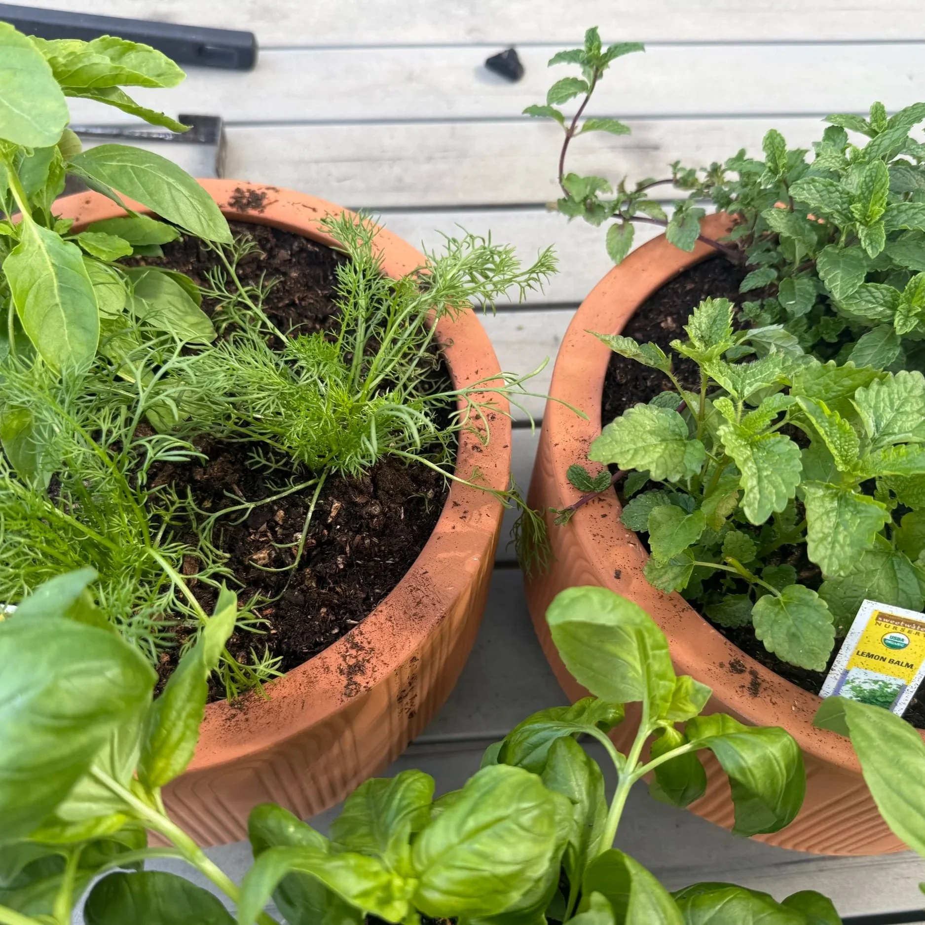 I am not a confident gardener but this concept struck me in the whimsy. I love picking a few leaves to steep depending on my fancy, and if I can keep them alive for a bit it will save me some money too. I chose lemon balm, chamomile, tulsi and 2 types of mint.